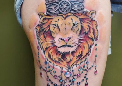 I’m a life long artist that began using tattoo medium in 2016. Completed a 2 year apprenticeship in Fort Worth, Texas at Daddy Jack’s body art studio under Lobsta. I’m certified in blood-borne pathogens, first aid, and CPR. Born in California and I grew up in Texas. Moved here to be closer to family and to raise my daughter in a fun artistic village. Looking to do beautiful pieces on men and women in a safe, clean, comfortable environment. I really enjoy accentuating the curves of the body and muscles to add flow and make your tattoos truly one of a kind works of fine art. I’m a diverse artist that can handle any style of tattooing from black and grey to color and everything in between. I especially love watercolor. I also paint in several mediums and I do commission art, if you are interested in my tattooing or painting services please feel free to contact me with your ideas.